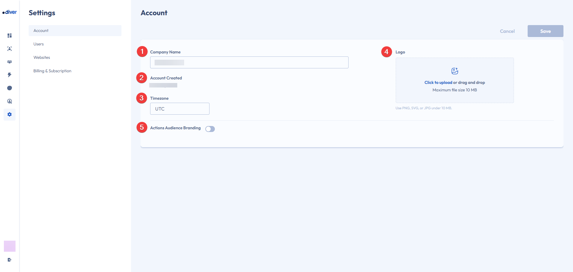 - Actions Audience Branding: You can turn on and set up actions branding with the toggle, read more about setting this up in our Action Branding Help Guide.