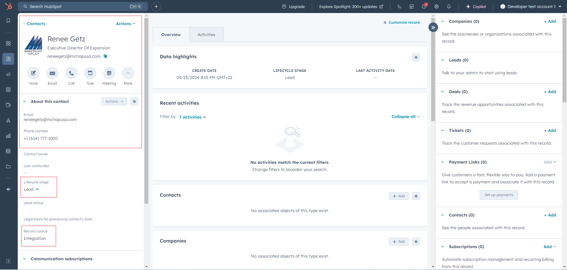 - Manage and view your CRM data (crm.objects.contacts.read crm.objects.contacts.write): This permission is required to create and update profiles in HubSpot