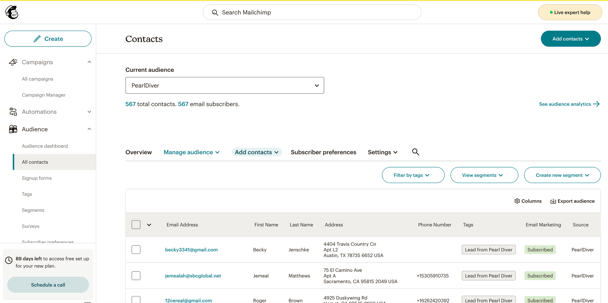 ❓Where to find Pearl Diver contacts in your MailChimp account