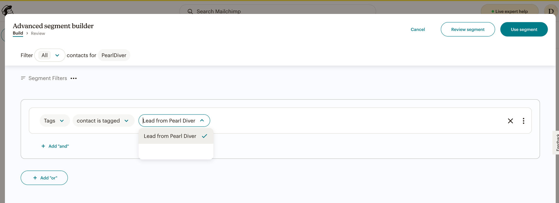 - Select ‘Lead from Pearl Diver' from the dropdown. Click 'Use segment'.