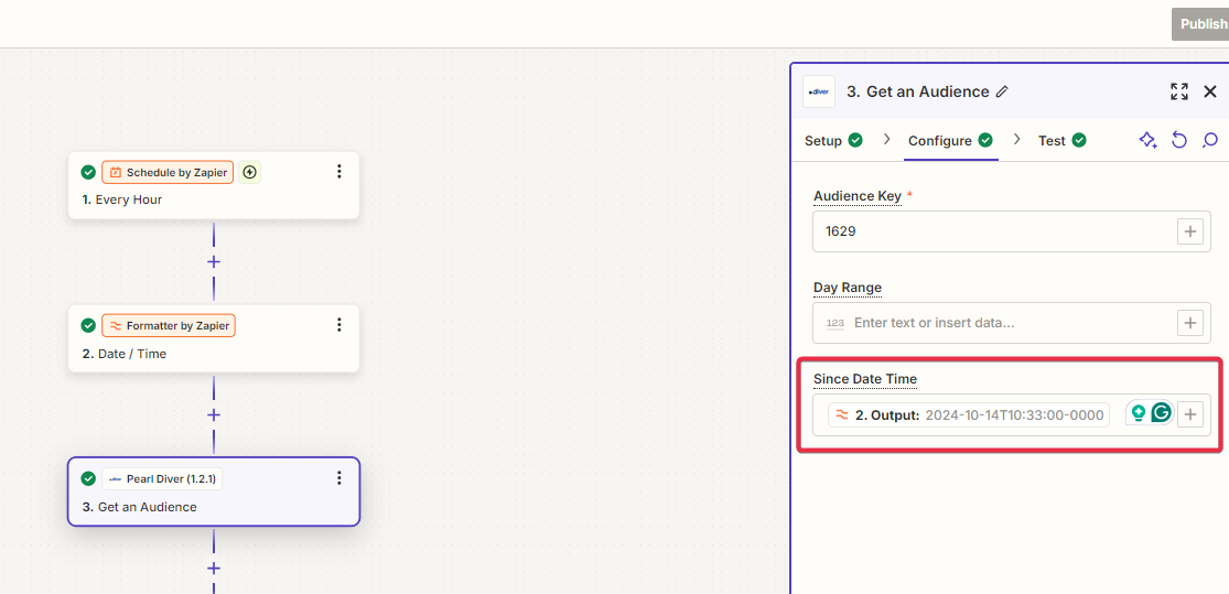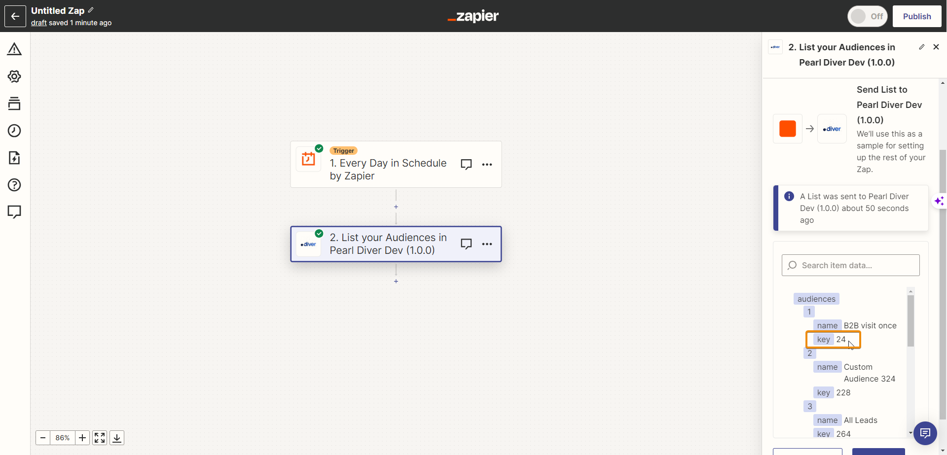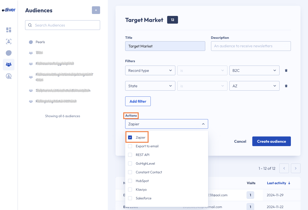 . Ensure at least one Pearl Diver Audience is created: Ensure you have created the audience filter for the data your would like to send through the Zapier integration